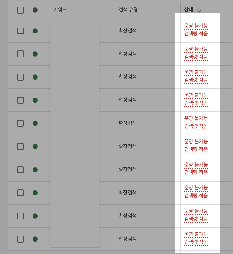 검색량이 너무 적으면 광고 노출이 안 됩니다. 구글 Ads에서는 검색량이 낮으면 “게재 제한(Low Search Volume)” 상태가 걸립니다.